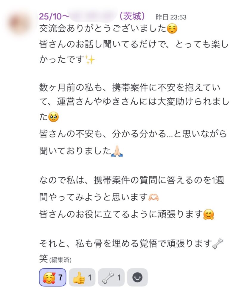 「私はとても素敵なコミュニティの一員になれたんだとしみじみ感じました😚」